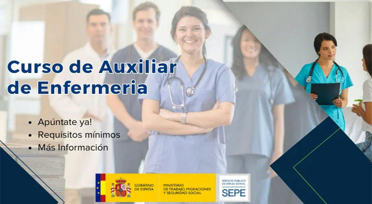 No se requiere experiencia previa. Los cursos incluyen módulos prácticos: anatomía, cuidado de mayores, comunicación con pacientes y asistencia clínica.Apoyo de programas SEPE