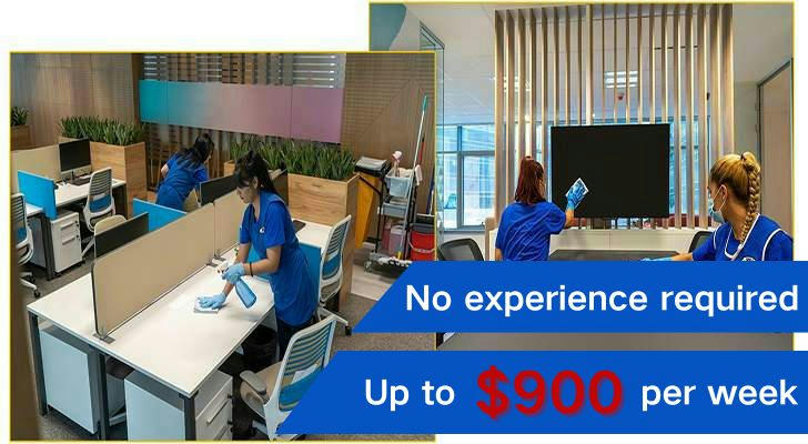 Office cleaning positions are open, offering up to $900 per week. No prior experience is required to apply; paid training is provided upon hiring. Office cleaners 5 days a week with a flexible schedule that can be coordinated around personal commitments. Payment is processed weekly, ensuring stable and regular income. The duties are simple and easy to learn, and the work environment is safe and convenient.